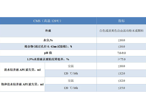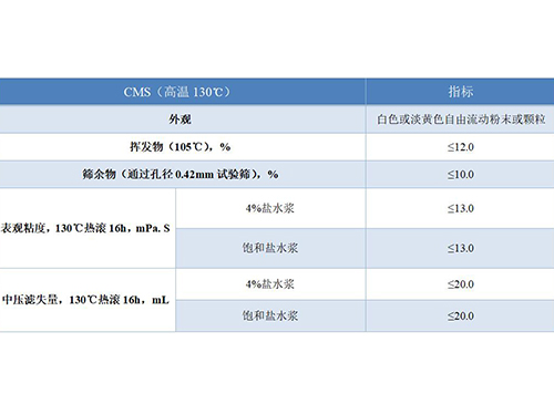 CMS是淀粉經(jīng)堿化、醚化引入水化羧甲基反應(yīng)而成。具有優(yōu)秀的抗飽和鹽水能力,抗鈣能力強(qiáng),降失水效果非常好,可以把失水降到2ml以內(nèi),能有效避免水泥污染和鈣離子污染引起的鉆井液失水增高。由于原料來源廣泛,價格特別低廉,特別適合低成本鉆井。該產(chǎn)品使用時配合殺菌劑效果較好。